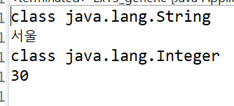 마지막에 확인해보면 t1의 클래스는 <String>으로 줬기 때문에 String으로 뜨고, t2는 Integer로 준 것을 확인 할 수 있다.